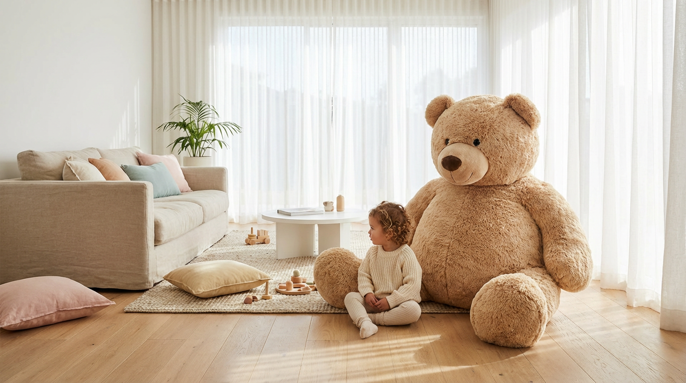 Ein riesiger Plüschbär oder ein metergroßer Elefant bietet mehr als nur ein Spielzeug. Er wird zum Kuschelpartner, zum Sitzmöbel und zum stillen Begleiter. Die schiere Größe macht den Unterschied – man kann sich anlehnen, einkuscheln und fühlt sich umhüllt von Weichheit.